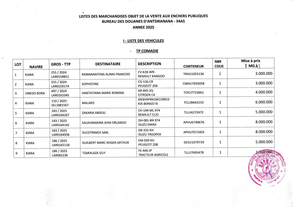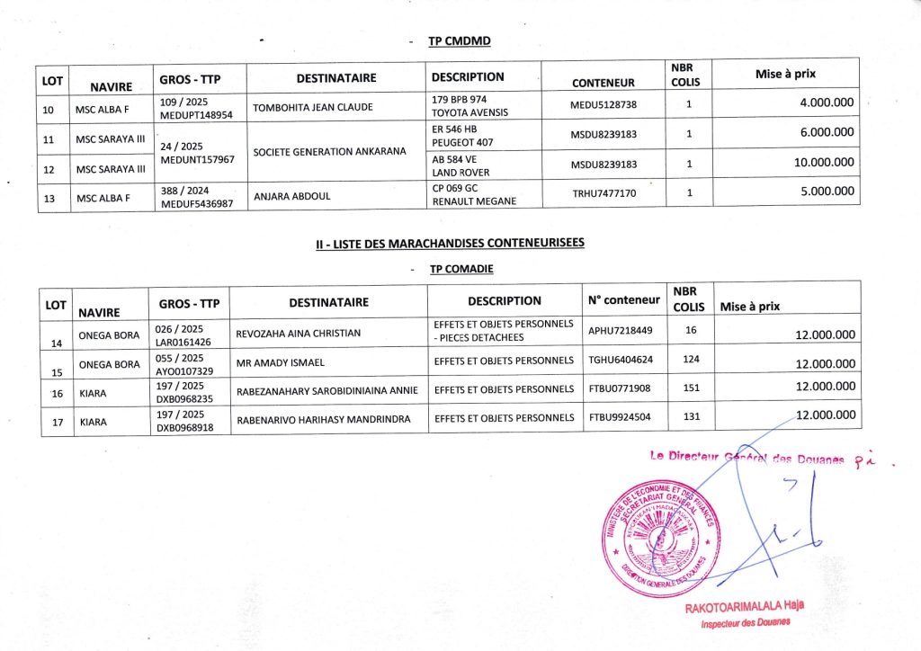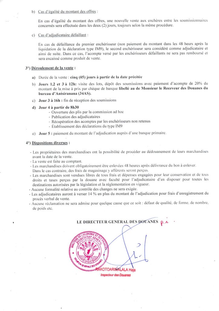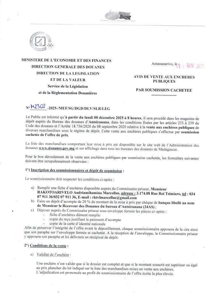 - Avis de vente aux enchères publiques sous conditions par soumission cachetée No : M2302-2025/MEF/SG/DGD/DLV/SLR/LEG