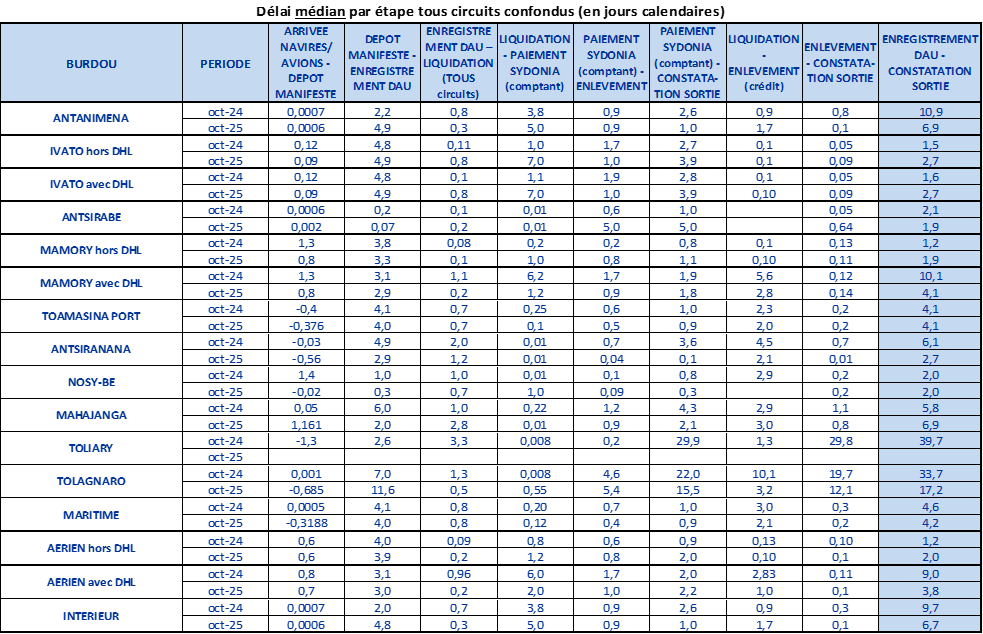 1ère Partie : DAU enregistrés – Délai de dédouanement à fin octobre 2025