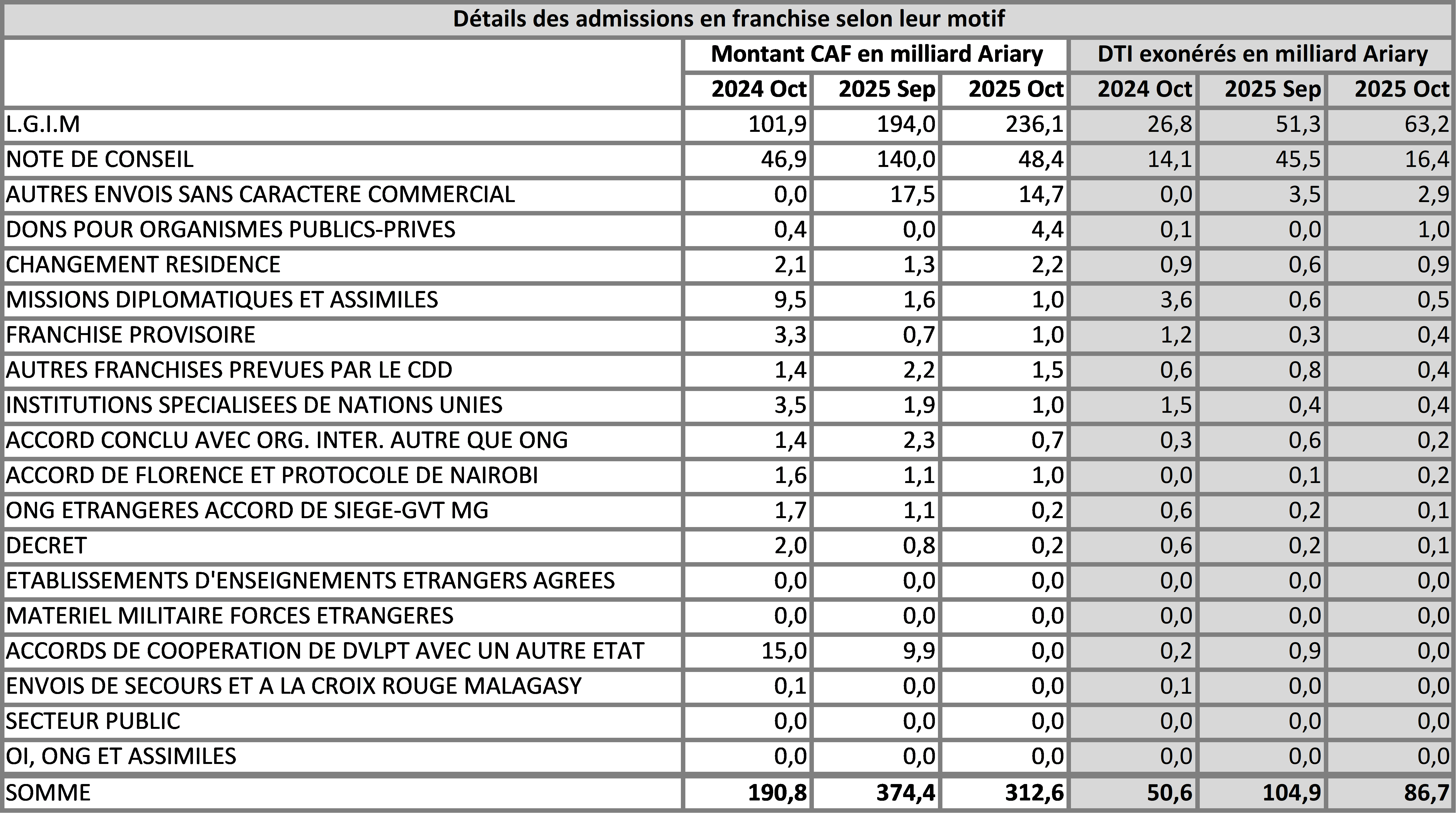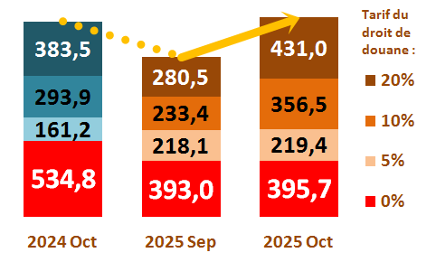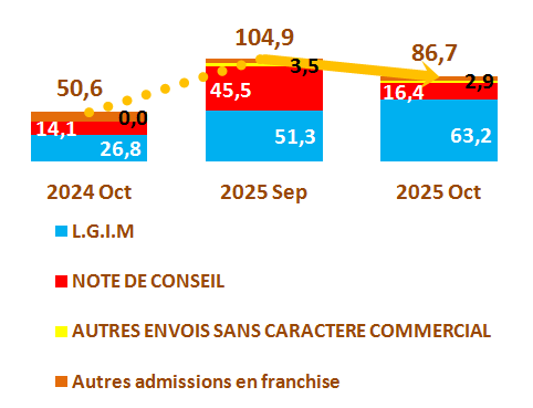 2è Partie : Importation mise à la consommation et régime d’entreprise franche sur la base des DAU enregistrés à fin octobre 2025